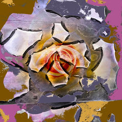 En introduisant un travail de saturation visuelle à l'aide de superpositions, de graphismes abstraits et d'explosion chromatique, la rose devient ruine et semble fossilisée. Elle prend une valeur mémorielle et devient vestige d’un monde en perte de repères, où ses attributs traditionnels se dissolvent dans une esthétique de la rupture, du trouble et de la mutation,